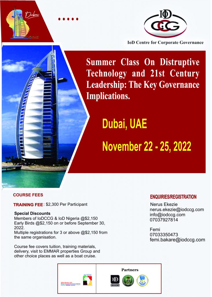 Summer Class on Disruptive Technology and the 21st Century Leadership: The Key governance Implications in Dubai, UAE – November 22-25, 2022